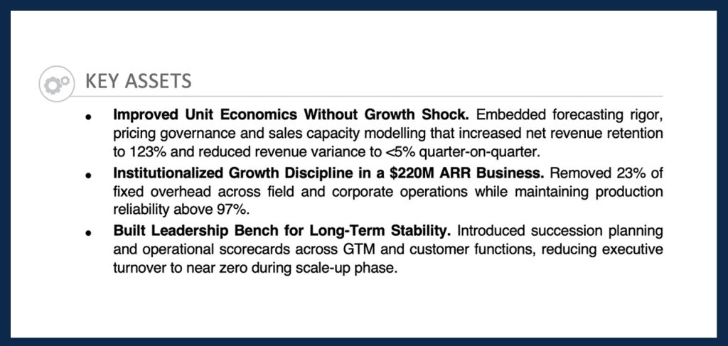 Above: The Key Assets section can make or break your COO job application. It’s that important.