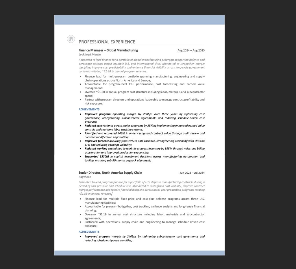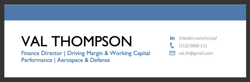 That’s why design is so important. Especially the top part of Page 1. It’s the most consequential real estate of your Finance Director resume.