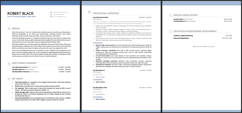 I’ve written comprehensive guides you can use to customize the template to your role: