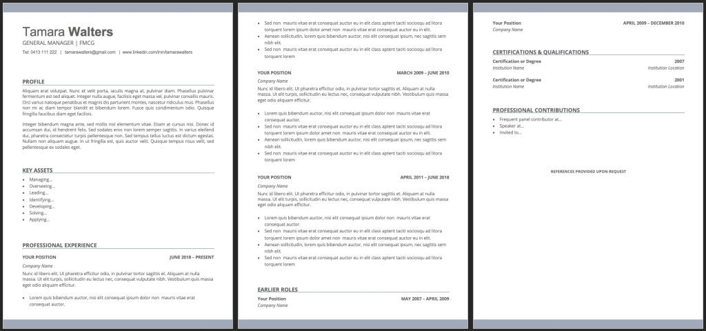 Click below to download any of the modern executive resume templates, designed for the U.S. job market. They are Microsoft Word-friendly and formatted in U.S. Letter layout.